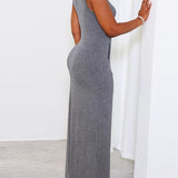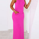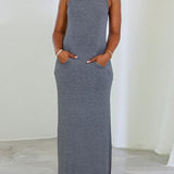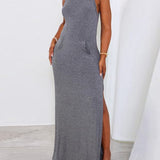Solid Sleeveless Slit Dress