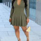 Solid Ribbed Pleated Dress