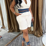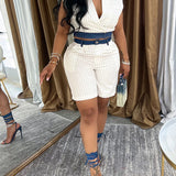 Denim Combo Stripe Vest & Shorts Set--Clearance