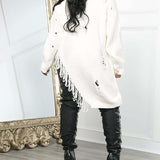 • Zip Front, Long Sleeves, Fringe Hem