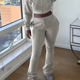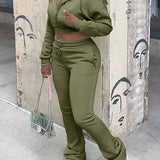 Solid Zip-Front Hoodie & Pants Set