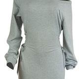 Boat-Neck Lace-Up Dress--Clearance