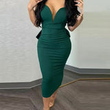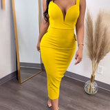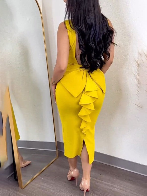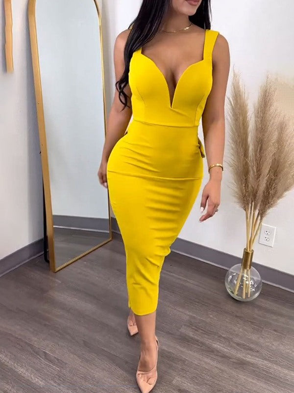 • Deep V Neck, Sleeveless, Backless, Slit Back