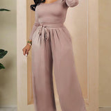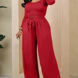 Solid Boat-Neck Top & Tied Pants Set--Clearance