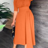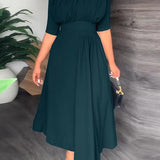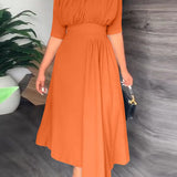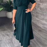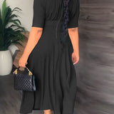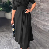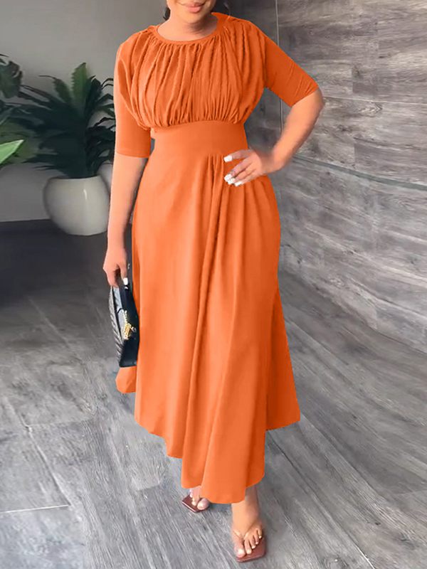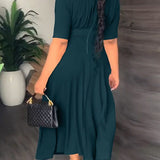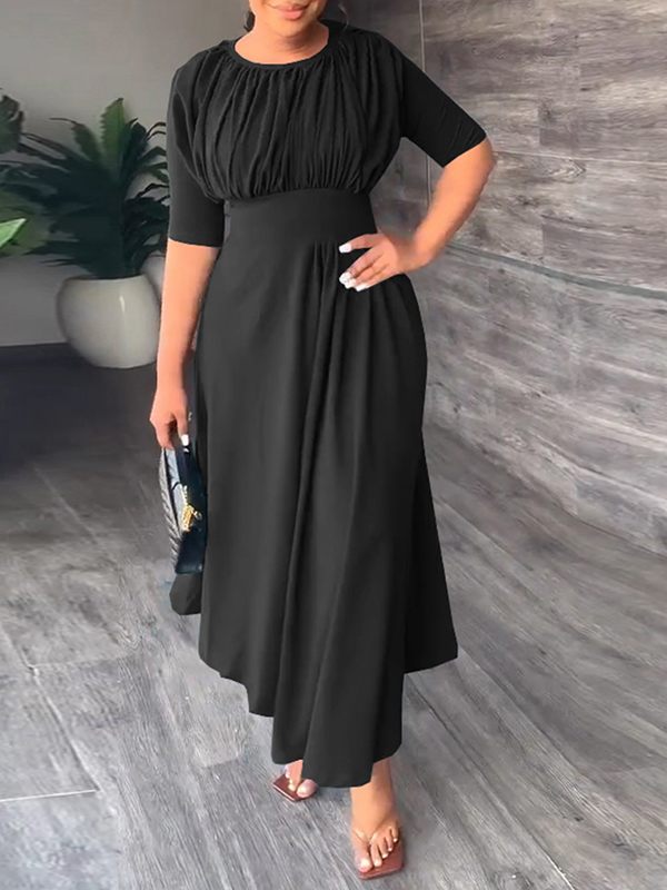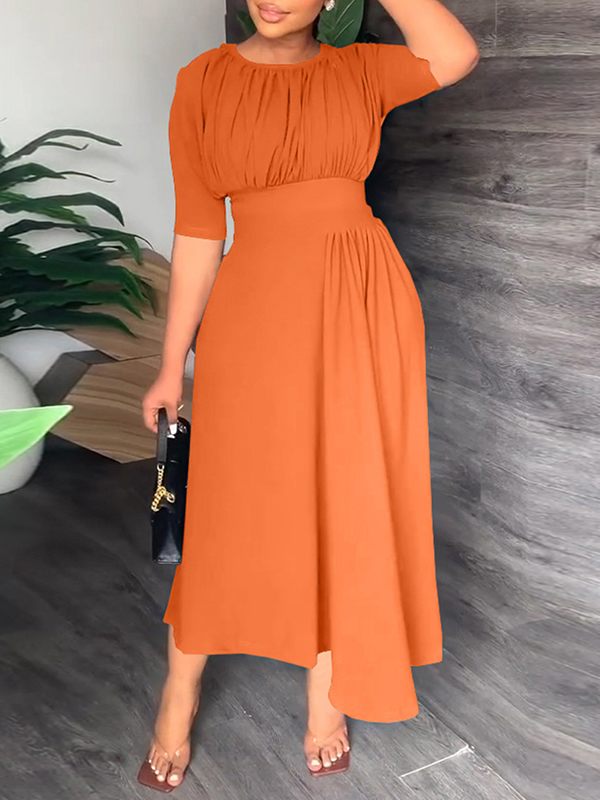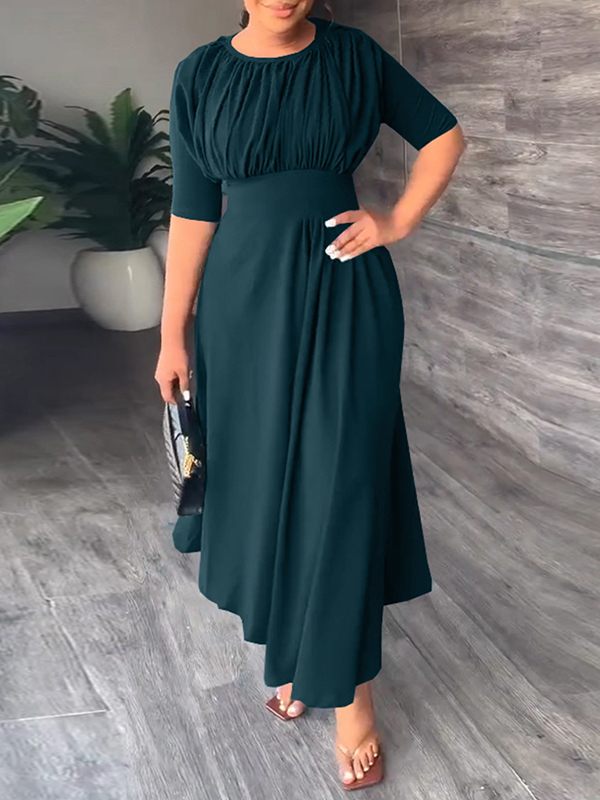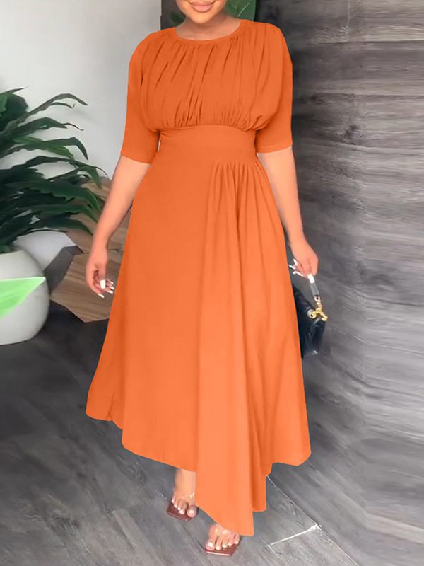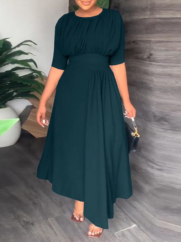 - Round Neck, Half Sleeves, Asymmetric Hem