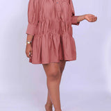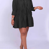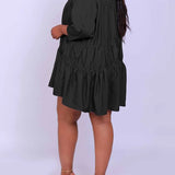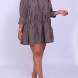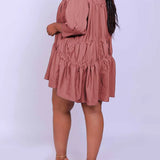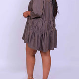 Solid Ruffle Shirt Dress--Clearance