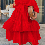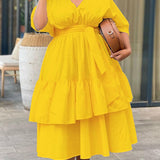 Solid V-Neck Tied Dress--Clearance
