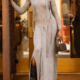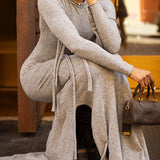 • Crew Neck, Cutout Shoulder, Long Sleeves, Fringe Combo, Side Slit