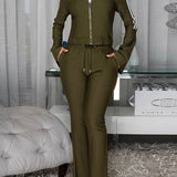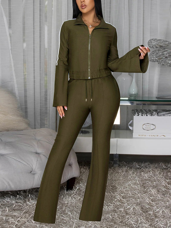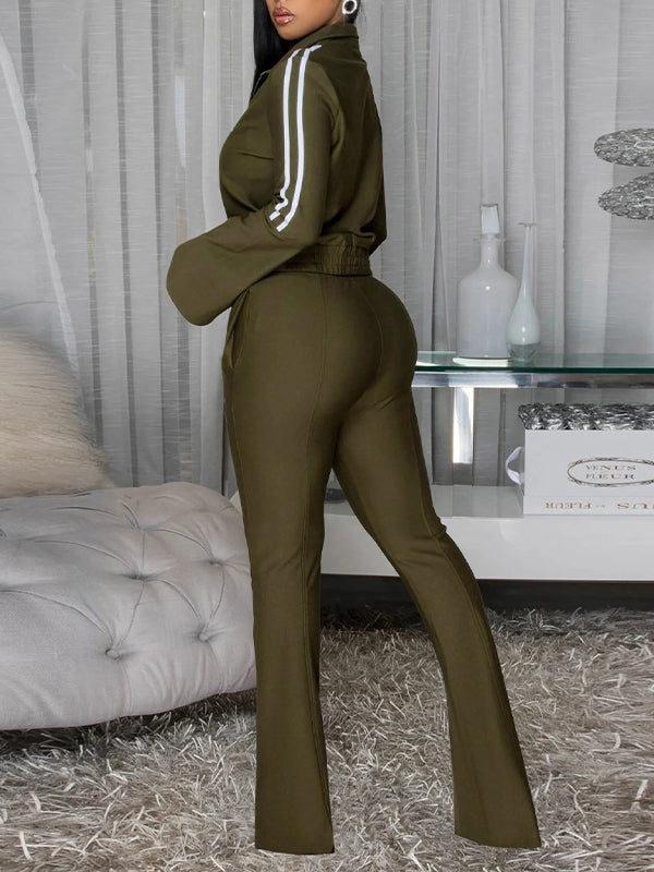 • Spread Collar, Long Sleeves, Zip Front, Side Stripe