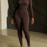 Solid Ruched Top & Skinny Pants Set