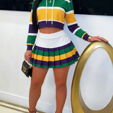 Colorblock Hoodie & Pleated Skirt Set