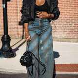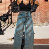 Distressed Wide-Leg Jeans