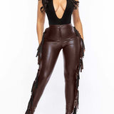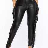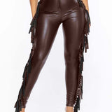 Fringe-Combo Faux-Leather Pants--Clearance