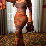 Printed Bell-Sleeve Maxi Dress