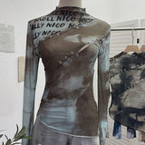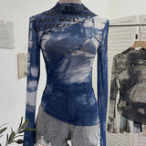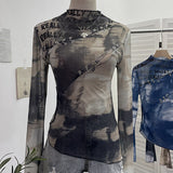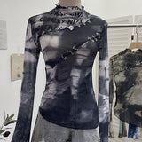 Printed Cutout Sheer Top