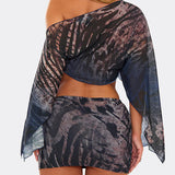 Printed Off-Shoulder Top & Skirt Set