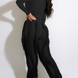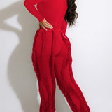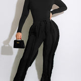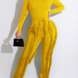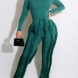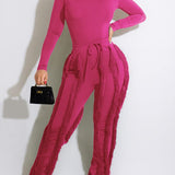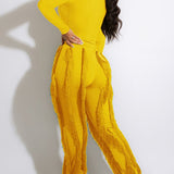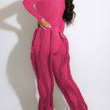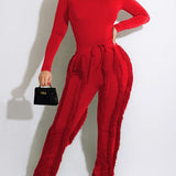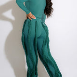 Solid Bodysuit & Fringe Pants Set--Clearance