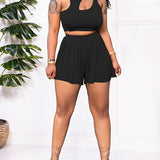 Solid Cutout Tank Top & Shorts Set--Clearance
