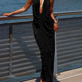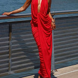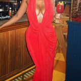 Solid Ruched Halter Dress