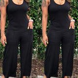 Solid Sleeveless Wide-Leg Jumpsuit--Clearance
