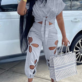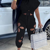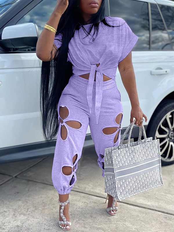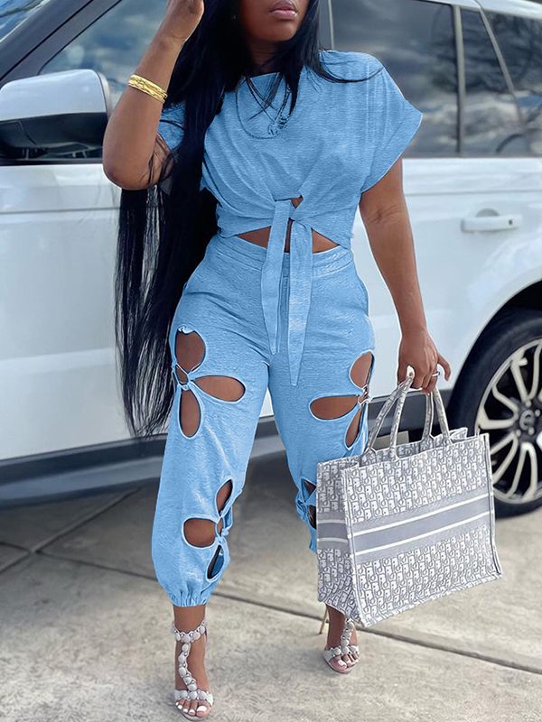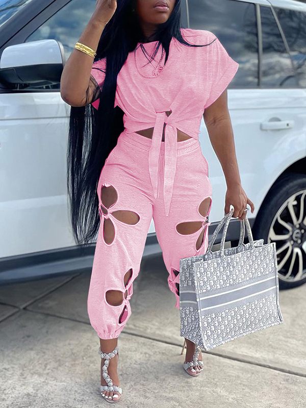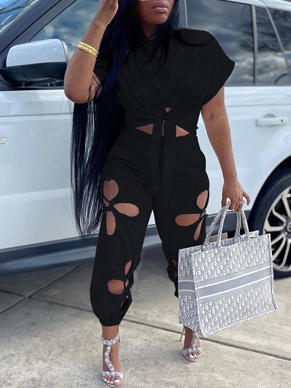 Solid Tee & Cutout Pants Set--Clearance