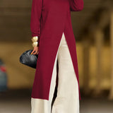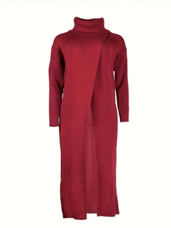 Indiebeautie Knit Turtleneck Slit Tunic Top